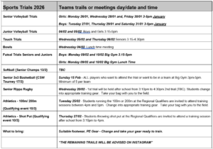 2026 Sports Trial dates